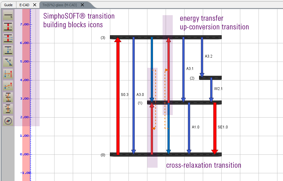 Can you quickly model optical amplification in rare-earth-doped materials? Do you know the critical parameters of the material that make the output amplification optimal? Does your current software allow you to easily set up arbitrary energy level diagrams for your material?